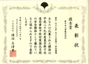 東京都下水道局 安全標語 優秀賞受賞